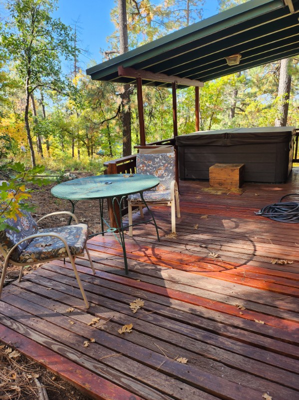 Feel close to nature all while staying cozy and comfortable in our Wildlife Cabin. With a large deck and a porch swing you will have no shortage of good views, but once the sun sets feel free to retire to a warm den with a wood burning stove and electric baseboard. With two bedrooms fitted with queen beds and a sleeper sofa, the Wildlife Cabin will sleep six; the perfect amount for a barbecue on the porch with the gas grill or a movie night in the den with the DVD player. While this may be the Wildlife Cabin, we still like things comfortable, so the cabin comes complete with a washer and dryer, linens, and a hairdryer. Pinetop Vista Cabins is the perfect destination for all your vacation needs!